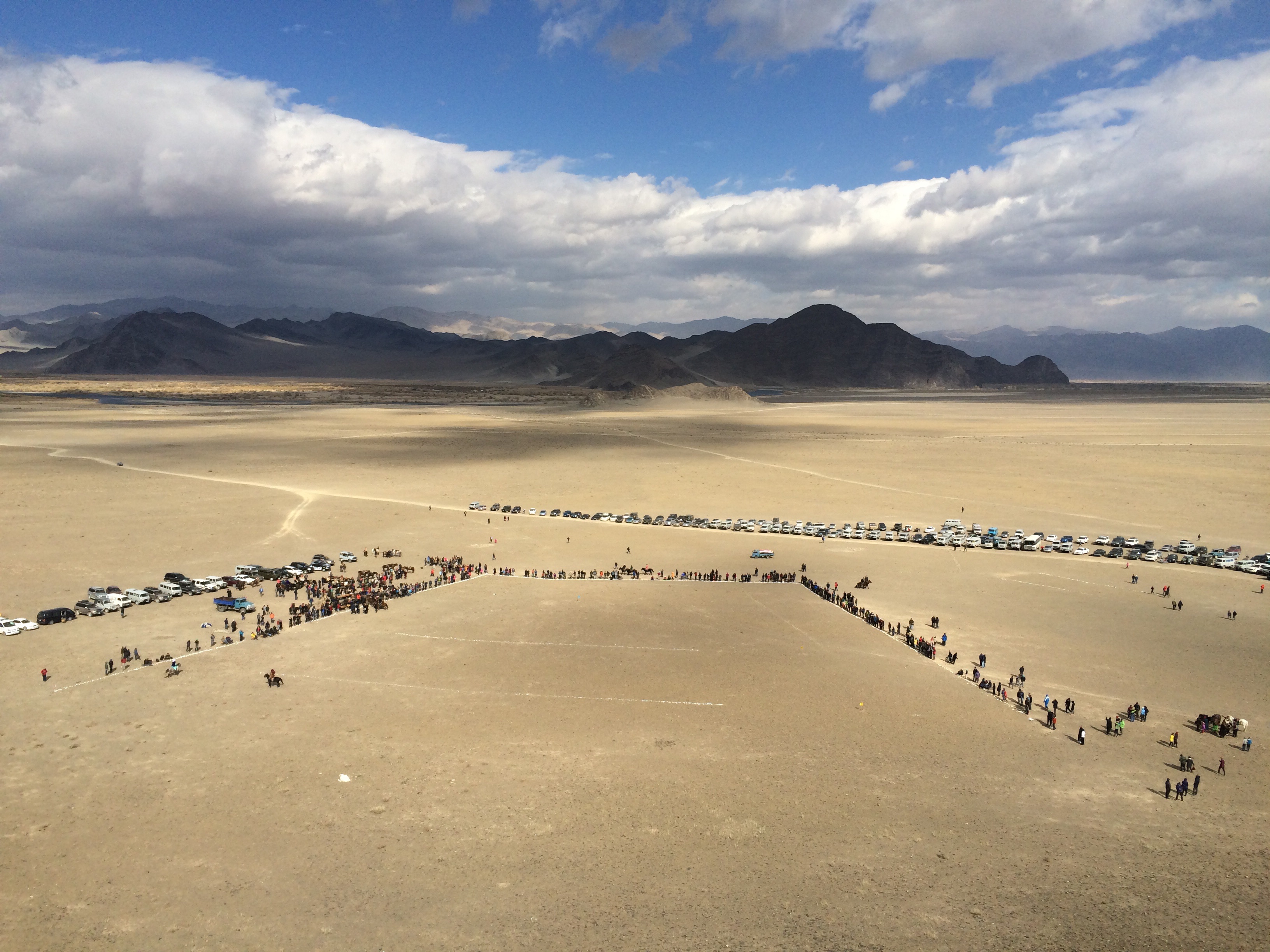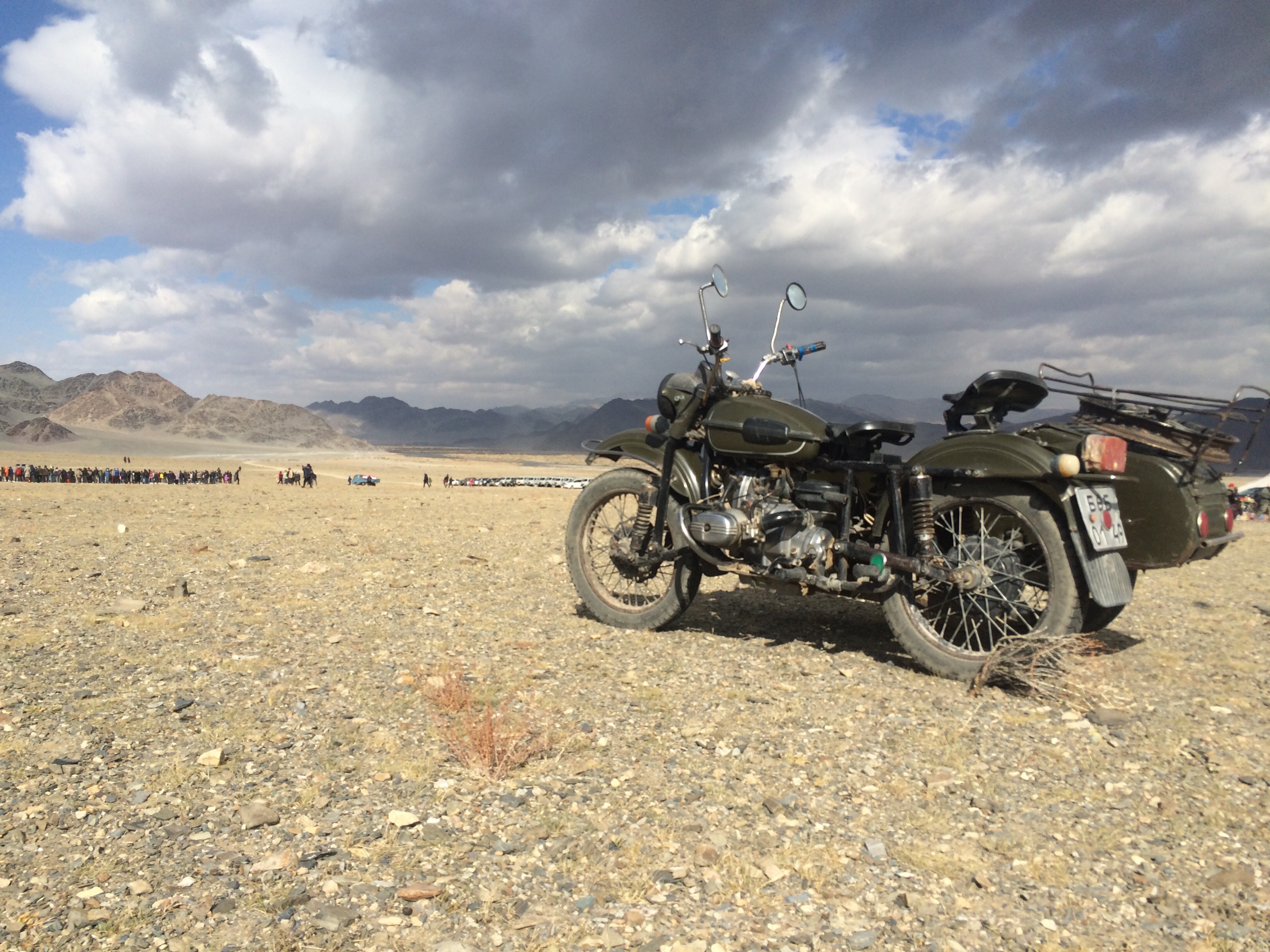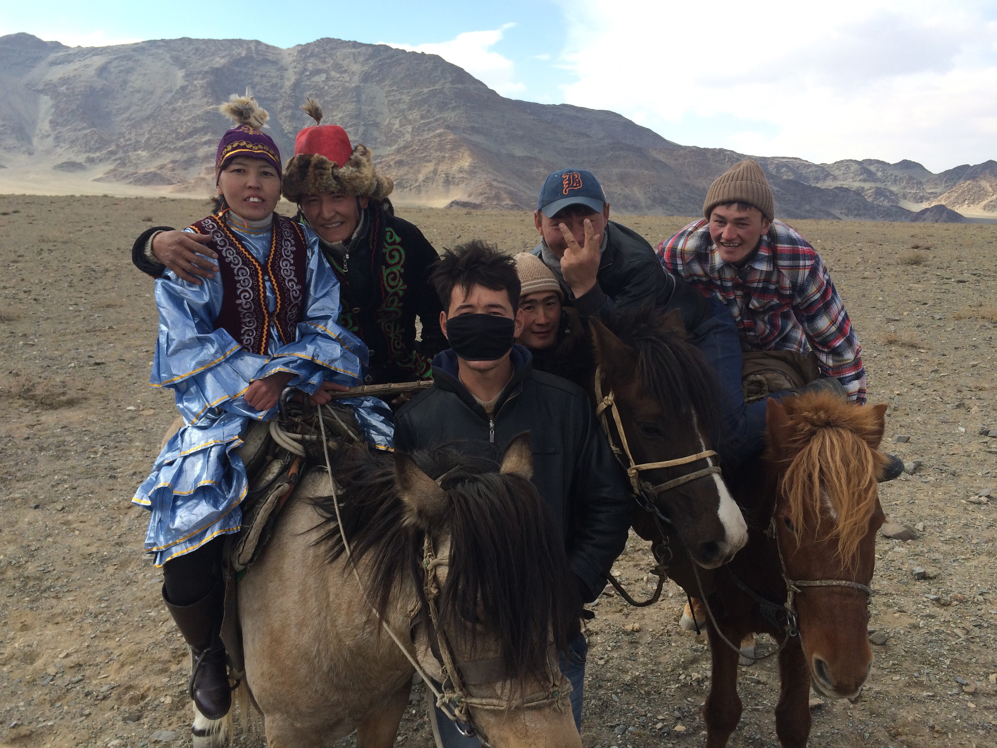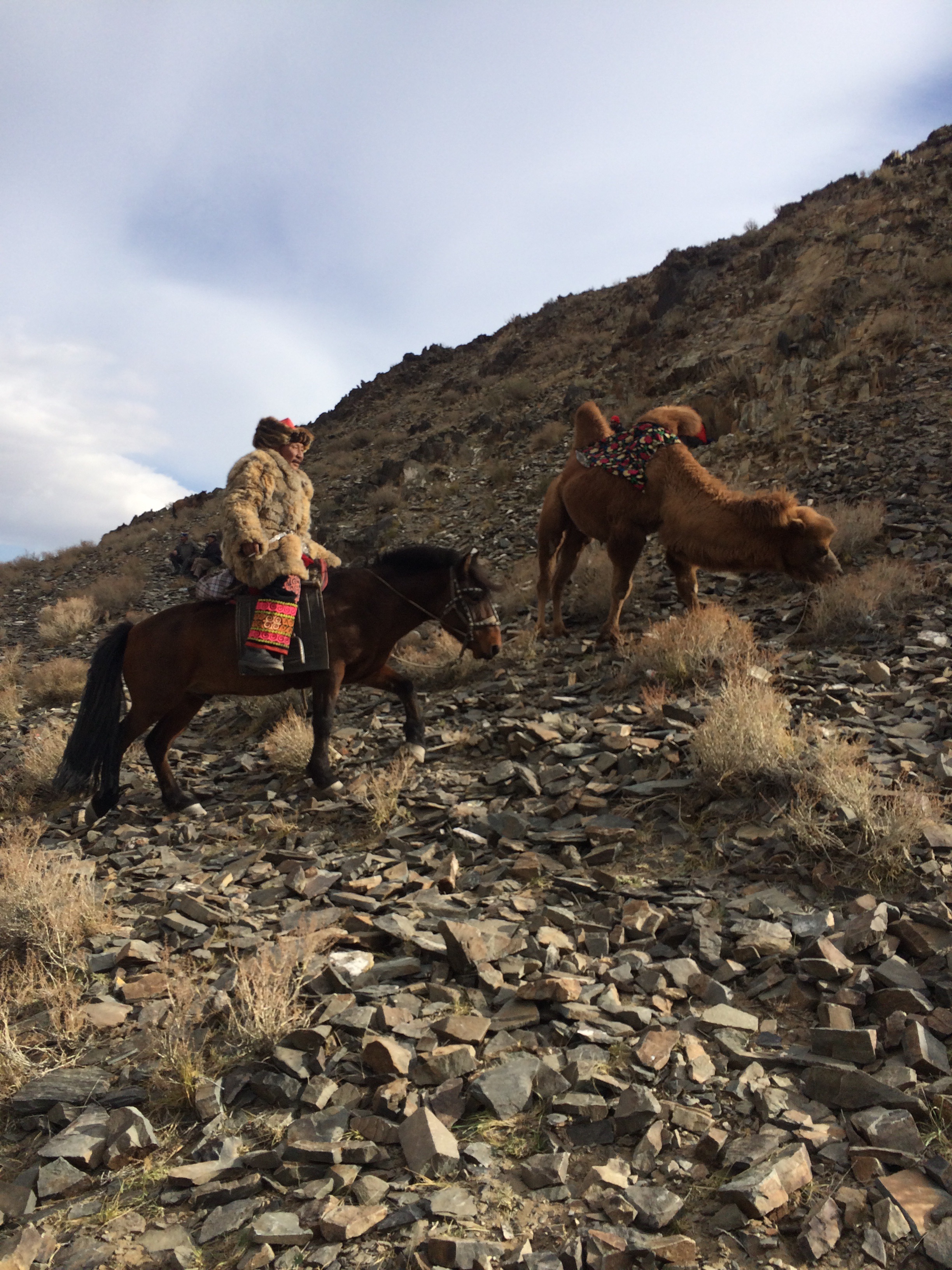 Day two of the Eagle Festival was met with slightly fuzzy heads, but equally impressive talents on the part of the hunters. They had to call their Eagles down from the mountain and have them land on some fox or rabbit skin that they would drag behind them whilst on horseback. This simulates how they actually train these Eagles for hunting. Apparently they used to use real animals, but some people were upset by it so now they use skins only. The day progressed with events such as ‘horseback tug-o-war’, exactly how we know it, except with the rope replaced with a dead sheep, a horseback race where the girls chased the boys and try to whip them and a camel race. We stuck around right until the very end, after all the medals and participation certificates were handed out. Piling back into Maggie, we followed the hunters back into town, this time some choosing to swap their horse for a motorbike, but always with their dependable eagle perched splendidly on their arm.
