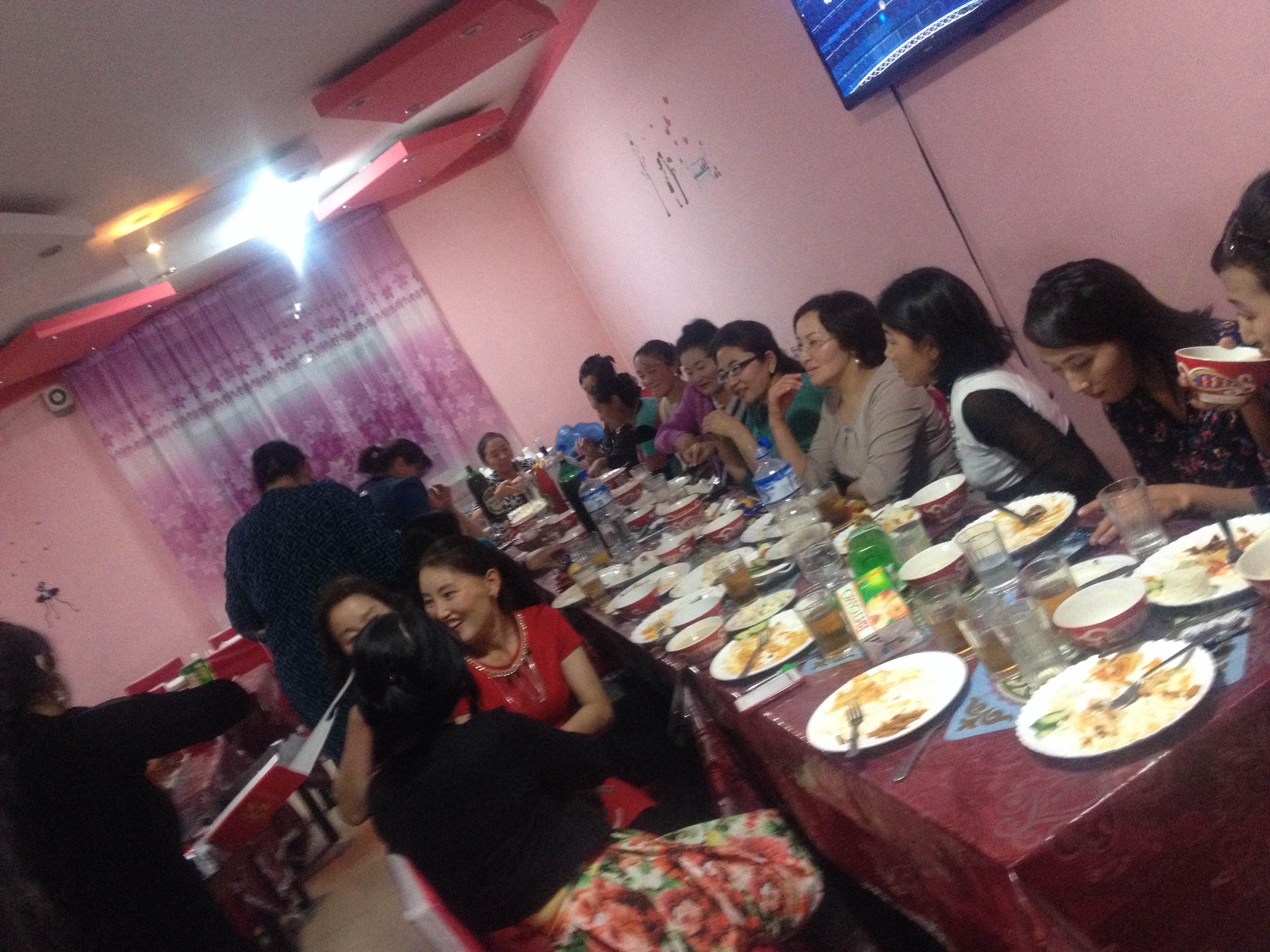 Our evening dinner was spent in a restaurant that had only one other table occupied…one full of about 20 middle aged women! They would sit and eat for a bit and then get up to dance, dragging the boys with them! It turned out they were all teachers and it was some special day for teachers in Mongolia, so I was accepted into the group and joined the celebrations. Jan, the crazy Danish cheesemaker, once again produced a bottle of vodka and provided entertainment to us and the teacher ladies with his unique dancing style.