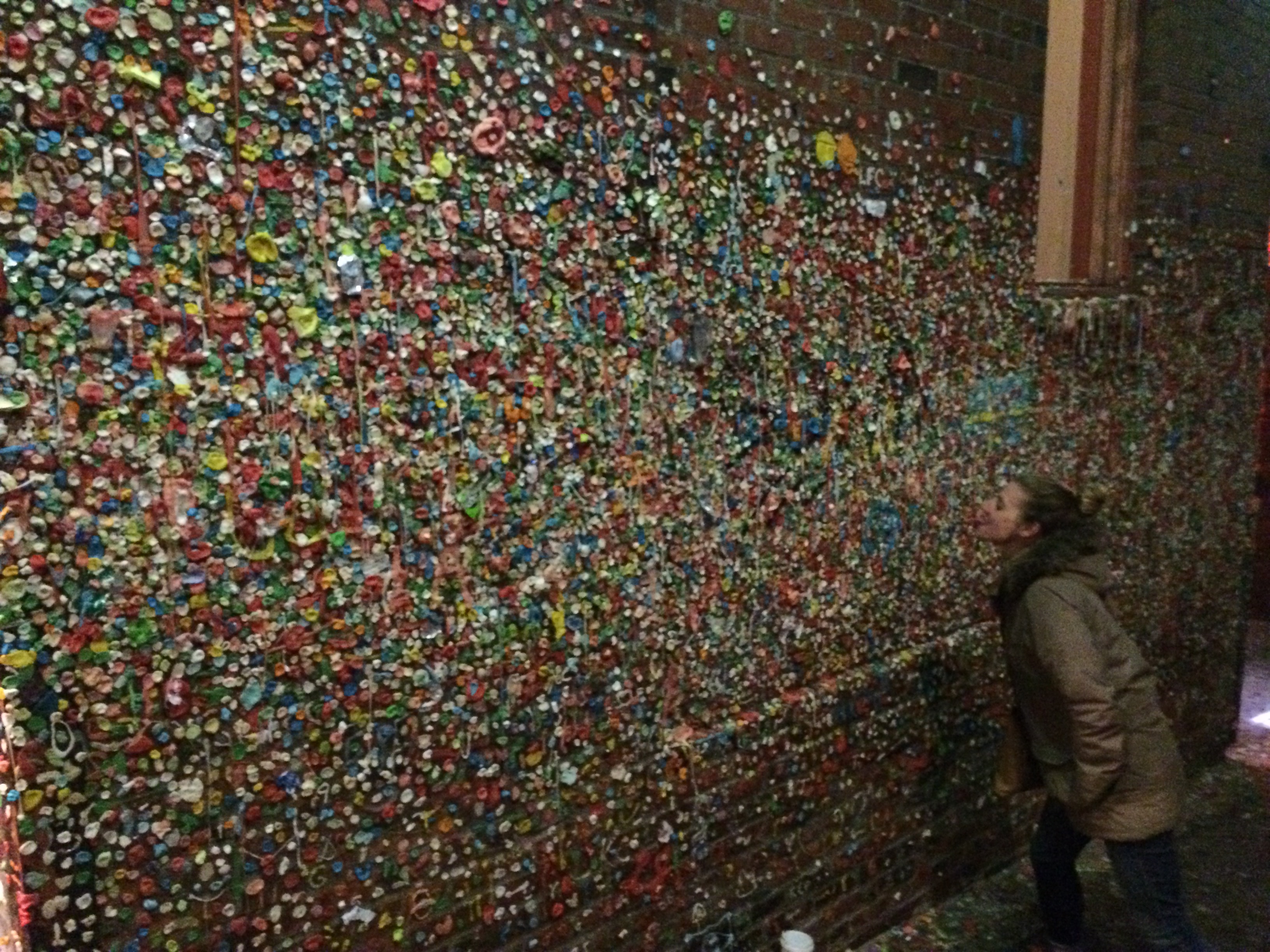 Before I go in to detail surrounding our next hurdle, I’ll take a break from car talk and give a rundown on what else we did in Seattle besides hang around the port. We were blessed with some decent weather and walked around the gardens under the Space Needle on our way to Lake Union where there is a ‘Centre of Wooden Boats’ that is located on a barge. I enjoyed the sun and Hayden enjoyed the wooden boats. We wandered through Pike Place market, even venturing down the sweet smelling alley to the ‘chewing gum wall’ which requires no further description. We ate crab using crab crackers and drank coffee from the very first Starbucks, which actually tasted ok even though we were really only there for the wifi. We went for dinner with our lovely hostel room mates and tried to stay out of the way of the exorbitant number of homeless people. It’s a lovely city but I was disappointed to find there is no such place as Seattle Grace Hospital, I feel let down by Grey’s Anatomy.