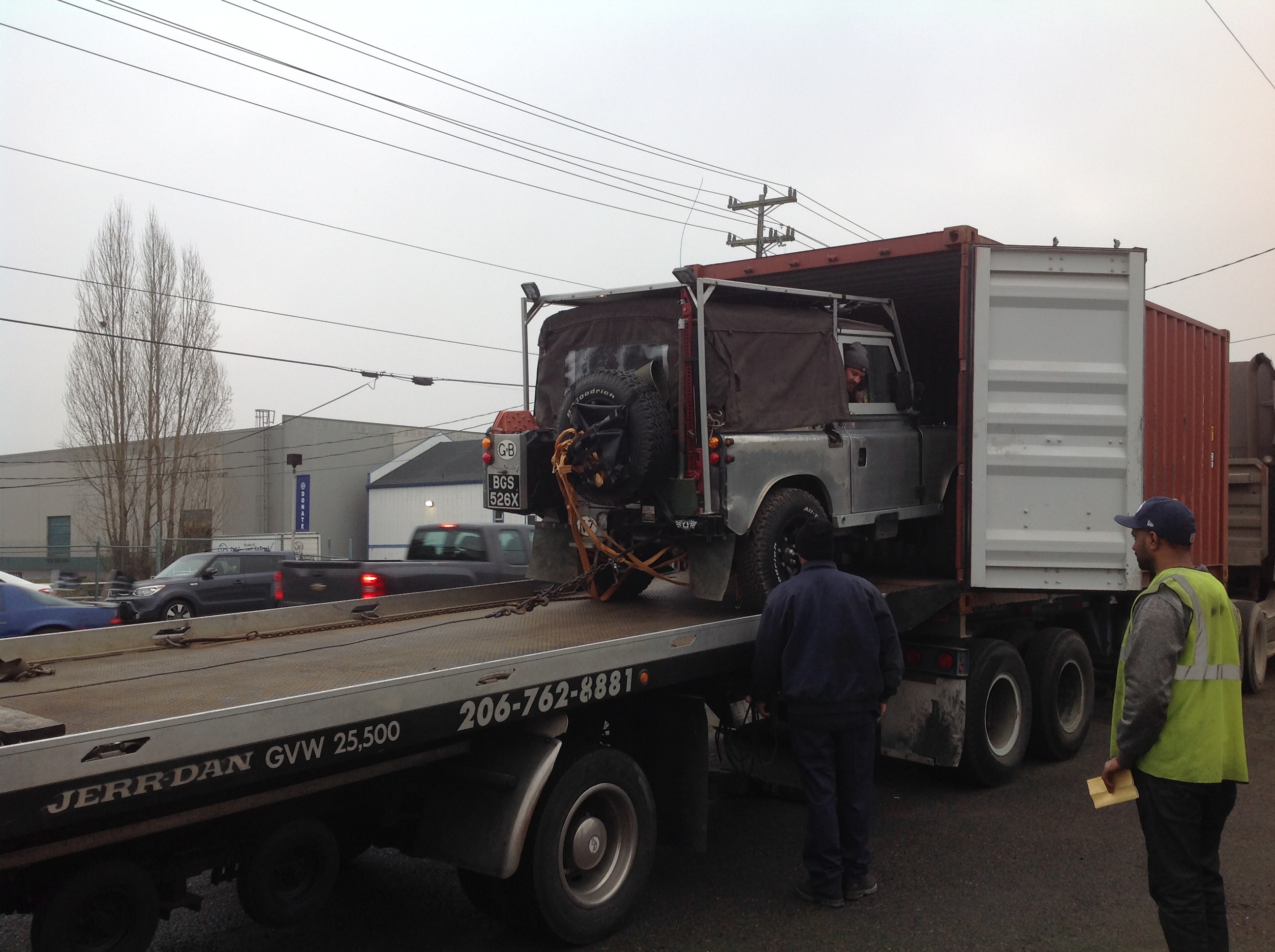 We walked down to the customs office in town only to be told we were in the wrong spot and that we needed to head to the field office. We were given directions and told it was about a mile and a half walk. I don’t think the American sized lady who divulged this information has ever done much walking. About FIVE miles later we reached the US customs field office. Here is where the confusion began. There seems to be a system in place when in comes to collecting your cargo, but it also seems to be a case of ‘too many cooks’. Over the next few days we dealt not only with US customs and the port authority, but with our shipping company from Mongolia, the actual shipping line and then some other affiliate of the shipping line, all without receiving concrete information on how the process works. It also turns out (and this actually makes sense when you think about it) you cannot just enter the port and drive the vehicle out of the container in the same manner that we drove it into the container in Mongolia. Security is a little more of a thing in America. Instead we needed to arrange trucking company, with full port security clearance, to enter the port and collect our container. This same company would then have to return the container to the port. The next issue was getting Maggie out of the container that is now sitting quite high up on the back of a lorry. Option one-find a crane to lower the container to the ground, drive the car out, use the crane to put the container back on the lorry. A logistical nightmare and probably cost an arm and three legs! Option two-find a ramp that the lorry can back on to so we can retrieve Maggie. We actually seriously considered this. A few days were spent exploring the junkyards by the port looking for something that might work. Finally a much more viable option three came to light-use a flatbed tow truck to back up to to the container on the lorry, winch Maggie out and then tilt the bed to lower her to the ground. Easy. Now who could do this for us? We had already spoken to a large number of companies that were either not keen to help someone who wasn’t going to be a repeat customer, or who would help but charge a small fortune. On Thursday morning, four days into our mission, we were once again wandering around the port thinking of how we were going to do this, when Hayden spotted ‘Juan’s mobile truck repairs’. He figured that if anyone was going to know decent trucking companies it would be Juan. Sure enough Juan pointed us in the direction of Gary’s Towing. With the full belief that we are better in person we walked over to see what Gary and his team could do. I’ll mention now that at this stage the container still had not been released as it was on hold for a customs inspection. Our last ‘free day’ at the port was Friday, whereby we would be charged $100 day everyday after that including weekends and despite the fact that our ‘free days’ included no work days such as New Year’s Day. Add to the fact that we were told that no one knew when this inspection would take place as they possibly had a back log from the Christmas/ New Year holiday period. Anyway, back to Gary’s Towing. A few staff at Gary’s had port clearance and we came up with the idea that one of them would go into the port to retrieve Maggie by unloading her onto their flatbed, drive out of the port where we would meet them to then lower her to the ground to drive away. Great plan. We were told that when we got the all clear from the port to give them a call and things can proceed. About an hour after leaving Gary’s, an hour spent stressing about how long the inspection would take, an hour spent constantly refreshing the status page on the port website, the ‘container available for collection’ column changed from a red ‘no’ to a green ‘yes’. Game time! We quickly made our way back to the hostel to collect the five gallon Jerry can and car battery that we had stashed under the bed. Perhaps you want to know why we had stashed such items. For obvious reasons you cannot ship a car full of fuel and because the Chinese have been a bit funny about shipping cars since the Tianjin Port explosion, you cannot ship the batteries either. Even to the most idiotic of people, these two things are crucial to the car working. The hostel phoned a taxi for us and I phoned Gary’s towing to ensure that they would be ready. With a quick stop in the taxi to fill the Jerry can we were at Gary’s towing hardly able to believe that we were about to get Maggie back. Hubie was our designated driver and we jumped in his truck and headed to the port. Hayden and I clearly do not have port clearance but were allowed to enter on the proviso that we stay in the truck. There was still some debate over whether we would be allowed to unload Maggie in the port despite it making perfect sense as it eliminates the need for the container to be removed only to be returned again. We were told to pull to the side and wait for the boss. Sure enough, one has to follow the full port procedure of removing the entire container. Hubie got straight on the phone to work something out. We arrived back at Gary’s towing and arrangements were made with a trucking company that they have a strong relationship with. Funnily enough it was one of the companies that we had contacted already who had not been that keen to help. A deal was done but due to the time of day no action could be taken until the morning as the port was closing. A fairly happy ending to the day considering that in the morning we were facing a budget blowing set of expenses!
