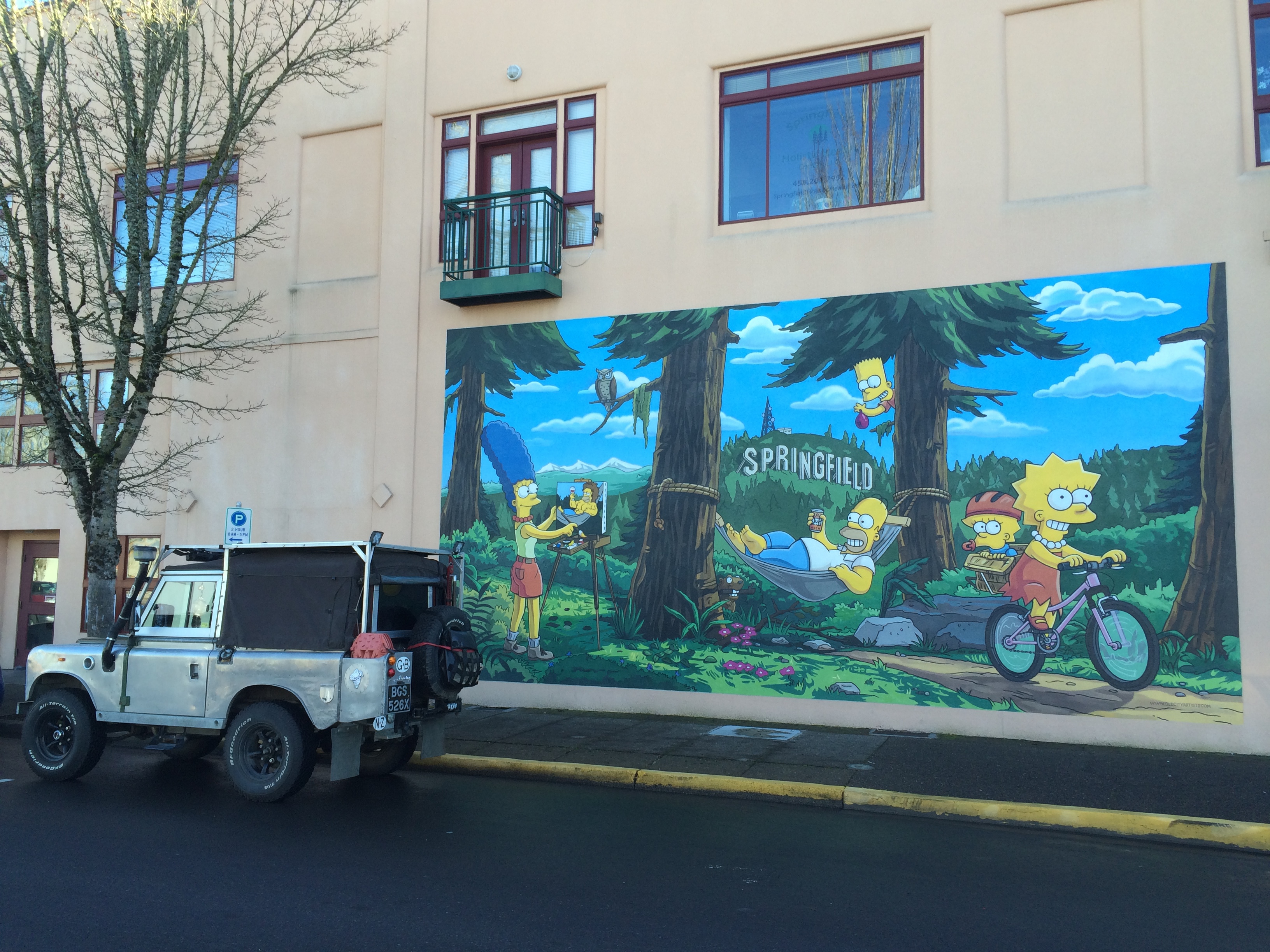 Despite adding the extra Rocky Mountain Springs in Canada, Maggie was still having some minor issues. We had heard about a Land Rover guru in Springfield (of The Simpsons fame) and after speaking to Ike over the phone, we decided to stop by Pangolin 4×4. At this point it was Friday afternoon and not only did Ike open his shop over the weekend to allow Hayden to work on Maggie (fitting her with free wheeling hubs, which happened to include changing the front half shafts in order to make them fit) but he also assisted in welding various brackets together for a new steering damper, going for test drives and offering valuable advice. On top of this, he and his girlfriend Jenna took us to Mexican for dinner, ice cream for dessert, and bakeries and breweries for lunch! And a walk through an extremely old hazelnut grove, to which I can admit I had never given any thought to how hazelnuts grow, but the straight rows of twisted old tress were impressive.