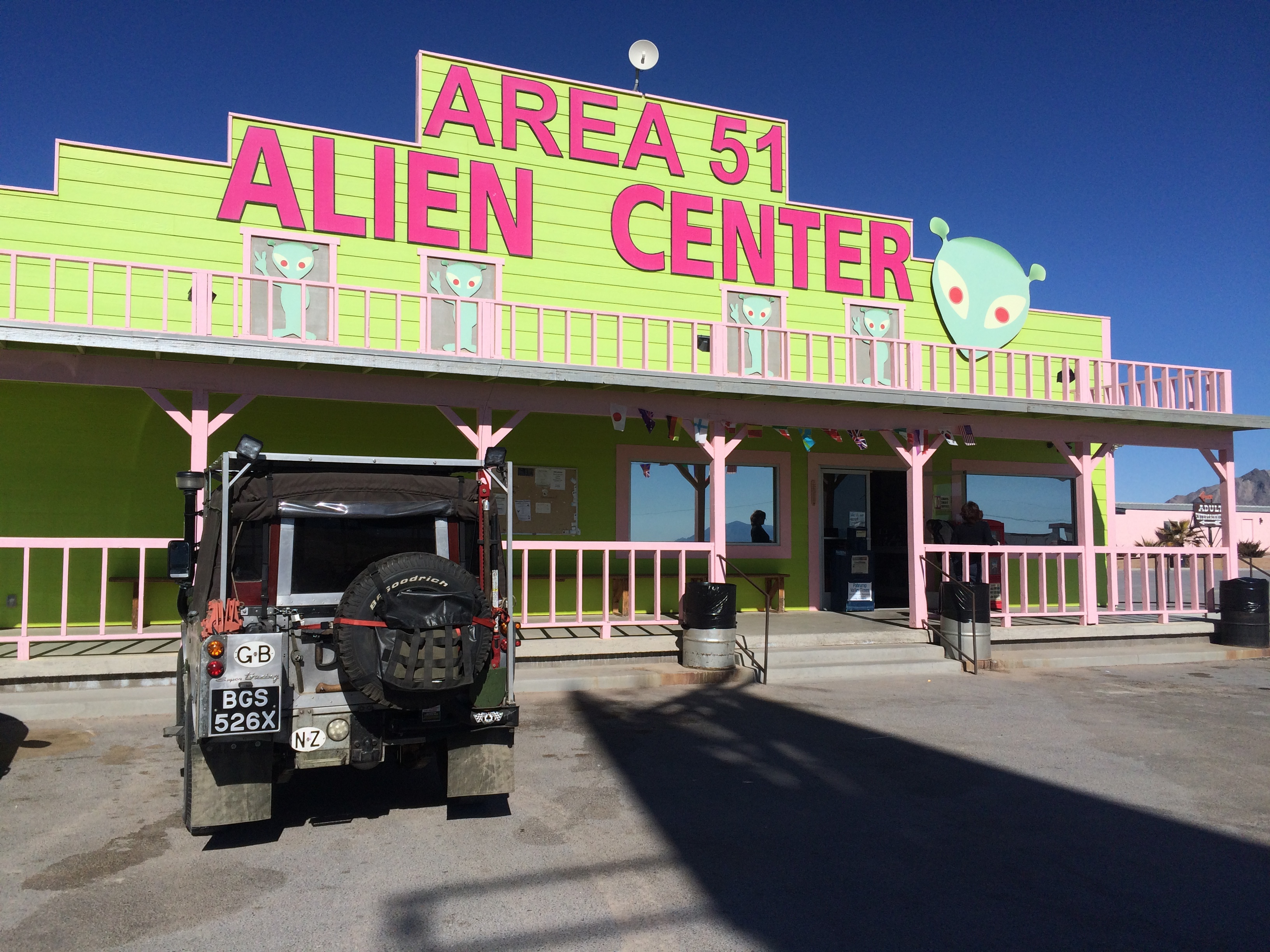 We made it out of Death Valley and into Nevada, still staring at nothing but dust. That was until we found an old helicopter from the Vietnam War and Area 51! Of course we had to stop for the obligatory photos and were a little shocked to find a roadside brothel out the back (the massive billboard stating ‘Roadside Brothel’ was a bit of a giveaway). We purchased some cheap alien paraphernalia and cold drinks and carried on though the desert to Las Vegas.