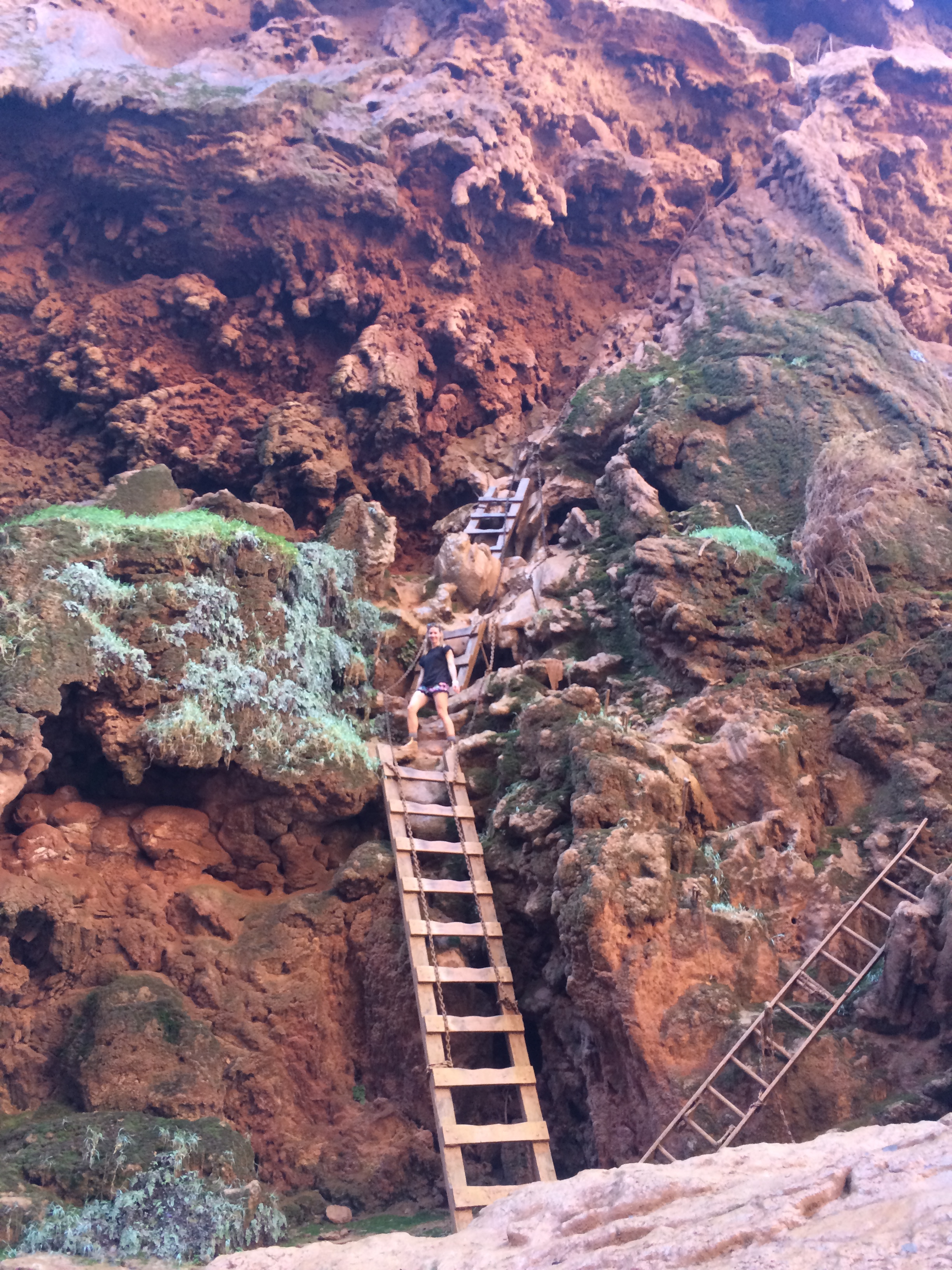 We had a quick swim and made our way back slowly to the campsite, still not getting used to the stunning scenes around us. We climbed up the cliff with chains, hauling ourselves onto the ladders and minding our heads back through the caves. Time for a rest!