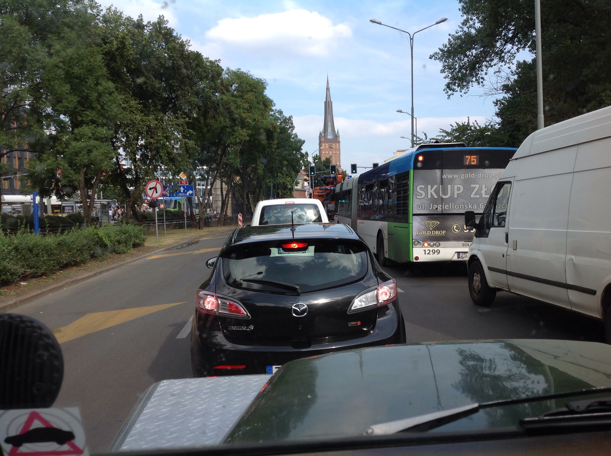 We entered Poland at the border city of Szczecin (try and pronounce that) and was surprised to see such a large marina with a huge variety of boats. It turns out Poland has a huge network or waterways and plenty of yachting and kayaking adventurers. Day two of Poland saw some less than average roads. The tracks left by lorries on the poorly tarmacked roads meant that Hayden was getting a full body workout just keeping Maggie in a straight line and away from oncoming traffic. It was soon apparent that Maggie was not running as she should and that the engine was not holding enough oil. We decided to press on to our destination as carefully as possible so that Hayedn would be able to take a good look at what is going on. You wouldn’t believe that this was the time that we came across ‘Land Walcz’, a Land Rover mechanic and specialist in the Polish town of Walcz. A quick U-Turn later and we were driving into a yard full of old Land Rovers and experiencing instant relief! Hayden’s Polish is limited to a few unpleasantries he has learnt on building sites and the mechanic’s English was virtually non-existent, but who needs words when you speak the language of Land Rovers. A bit of pointing here and there, some shouting from one mechanic to the other, and lots of smiles and handshakes later, we were equipped with the few parts that we needed – not even pushing the budget at about £5! The mechanic would not let us go without a family picture in front of Maggie. Hayden and I posed with him and his two sons and I regret not getting a photo for ourselves. We departed with gifts of stickers and lanyards and feeling some Land Rover Love!