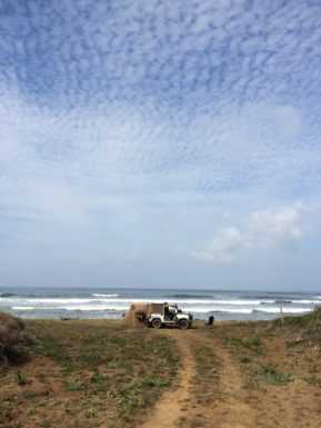 Camping seemed to be in the yards of restaurants, all cramped in to small spaces. We drove just out of town and along the coast road until we found an empty lot without a ‘for sale’ or ‘private property’ sign and made our own camp, nestled amongst huge beachfront mansions. A few residents walked by in the evening giving friendly waves and we settled in to our beachfront home with a driftwood bonfire.