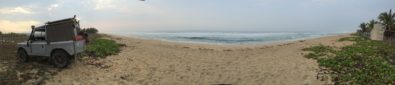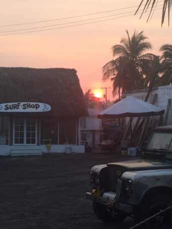 We packed up our beach camp and carried on down the coast. We drove through the mega touristic Puerto Vallarta, past all the resort compounds that really could be anywhere, as could you when your inside by the pool. We cut inland for a bit, absolutely bombarded by the heat, the Land Rover ‘air conditioning’ was battling. Note that the air conditioning means driving with our door tops, all well and good when a breeze blows through, but the second we stop, or the breeze turns to dry, hot dust, the sweat instantly prickles on our skin. We stopped for a break, coincidently at the same place as Katie, Damon and Kyle, and were greeted by the ice cream man. Feeling cooler we all drove to the beach to find our own camping spot. We spent two nights resting by the sea, having beach bonfires, cutting coconuts and swimming. We made a plan to stop by a place called Pascuales, known for its big waves (but also camping with wifi). We drove separately but with the plan to meet there. Hayden and I found a car wash and paid a local 80 pesos to throughly clean Maggie, she was having some bad reactions to all the salt. Back on the road we headed through the town of Tecoman and to the beach. It was our first encounter with tourists from somewhere other than Canada and America. There was a group of French bodyboarders and a few Aussies (one suitably named Banjo) and a couple of kiwis. There was a small spot to put the tent, a rickety old watch tower to check out the big waves and pool to cool off in (thankfully as the waves were so big I wouldn’t dare put my big toe in!) There was a lot of talk about how big the waves were going to be, but not a lot of surfing. Nevertheless we were up early with all the surfer kids and sat watching the waves in a hypnotic fashion, pretending we knew what we were looking out for. Occasionally one or two surfers would man up and take the plunge, providing entertainment for those of us left on the black sand. The young locals definitely showed up the tourists. Our few days progressed in a similar manner – watch the surf, gasp at surfers getting smashed, eat, use the Internet, eat, check out town, use the Internet, swim in the pool, use the Internet, wait for the ice cream cart, watch the surf, wait for the donut cart, use the Internet, eat and sleep. Tough going. The Californians left a day ahead of us, but we figured we will no doubt see them in Puerto Escondido. We spent one more morning watching the surfers battle it out before heading further south with the plan to stop at La Ticla for lunch. Well, who did we see camped in a little free spot? The Californians. They had some minor car trouble on their drive yesterday so by the time Hayden had a little look at it, it was past lunch time and we joined them for the evening. La Ticla is another popular surf spot so our morning routine of drinking coffee watch surfers get smashed was repeated. We were given a hot tip that there was a much calmer, beginner break further south at Saladita. Hayden and I were keen to give some long boards a go so we headed off south. We spent the night in Neixpa, more big waves and more surfers who don’t seem to actually surf, rather they talk about their surfing. We were beginning to get a it sceptical.
