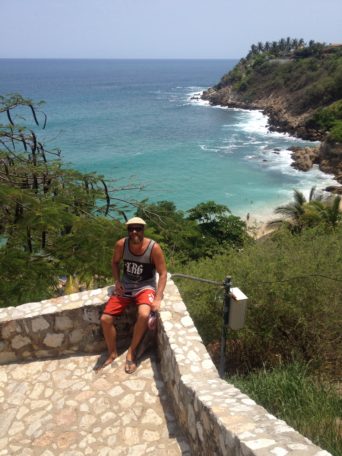 In Puerto Escondido we found a new home. Well, to be exact, in the little southern cove of La Punta, we found a new home. Puerto Escondido and its main beach Zicatela is a major tourist haven and has earned the reputation of the Mexican Pipeline, with the waves sometimes getting so big that the shops on the beachfront have suffered severe damage. The promenade is lined with fairly pricey shops and cafes, but one does not have to look far to find little pieces of local Mexico. We had been communicating with a lady named Jess via the website workaway.info. It is a database full of people all over the world who open up their homes to people like us in return for a little bit of work. Jess owns a guesthouse next door to her own lovely home and needed some work done on the bungalow in the back yard. We drove over to take a look. The work would be quite different to anything that Hayden was used to. Lifting a tin roof in order to create a useable space underneath would be no small feat, and designing and creating a mosaic bench would be pushing my already lacking creative side. Nevertheless, we took an instant liking to Jess so agreed to get to work. We gathered our things from the campsite, stopping by the beach for a swim – it is the only respite from the wicked heat.